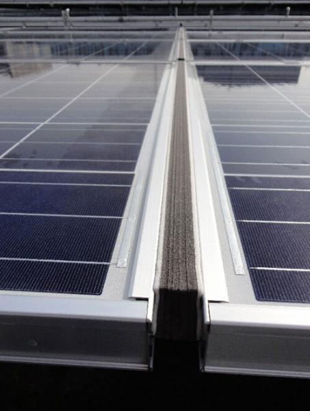 效果。最初考慮了用膠帶封貼的方法,但因其劣化速度快而放棄了。最終從耐久性和耐熱性考慮,采用了在電池板的框架之間夾入聚氨酯樹脂材料固定的方法,封住了縫隙(圖9)。