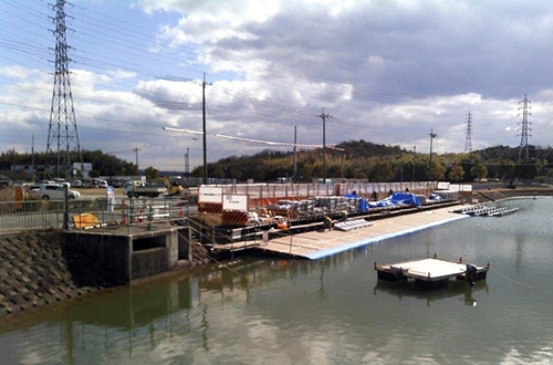 圖5:在不破壞堤壩的情況下搭建作業(yè)場地寬敞的作業(yè)場地便于施工(攝影:京瓷通信系統(tǒng))