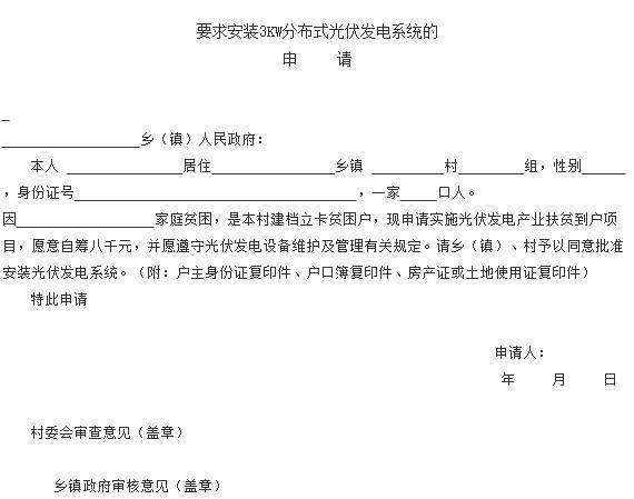 附件:1、要求安裝3KW分布式光伏發(fā)電系統(tǒng)的申請(qǐng)