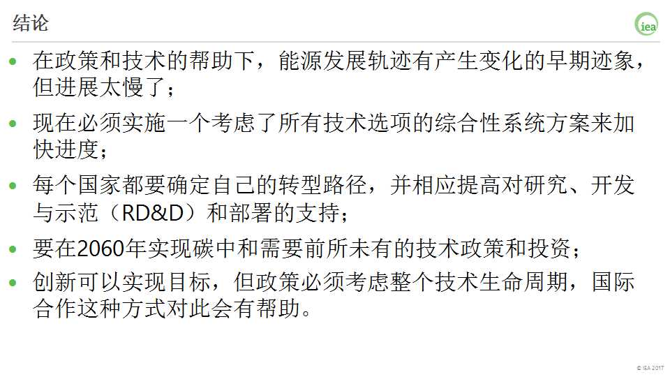 現(xiàn)在,我想總結(jié)一下《能源技術(shù)展望2017》報(bào)告的幾個(gè)主要結(jié)論: