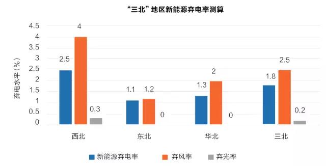 2020年,“三北”地區(qū)棄風棄光電量70億千瓦時,棄電率2%。其中,棄風電量68億千瓦時,棄風率3%;棄光電量2億千瓦時,棄光率1%。西北、東北、華北地區(qū)棄風棄光電量分別為40億千瓦時、7億千瓦時、23億千瓦時,棄電率均在5%以內。通過多措并舉、綜合施策,2020年有望實現(xiàn)新能源棄電水平控制在5%以內的目標。