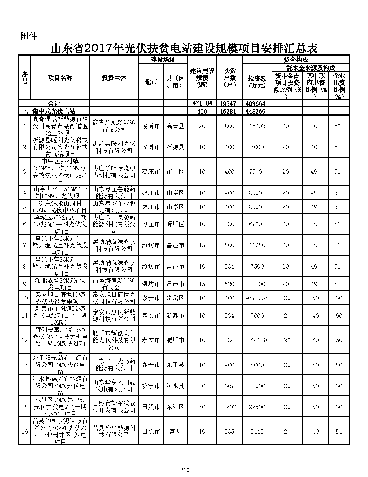 山東發(fā)布2017年光伏扶貧指標(biāo)計(jì)劃方案:491.54MW 扶貧戶數(shù)20419戶