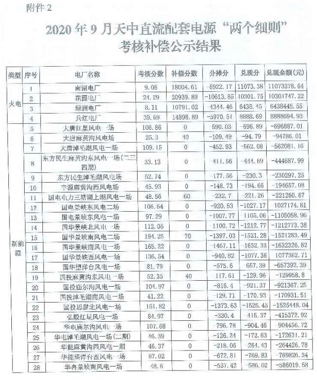 9月份新疆電網(wǎng)、天中、吉泉直流配套電源“兩個(gè)細(xì)則”考核補(bǔ)償結(jié)果公示