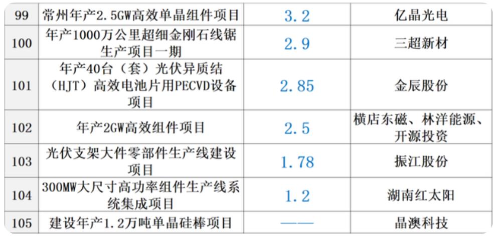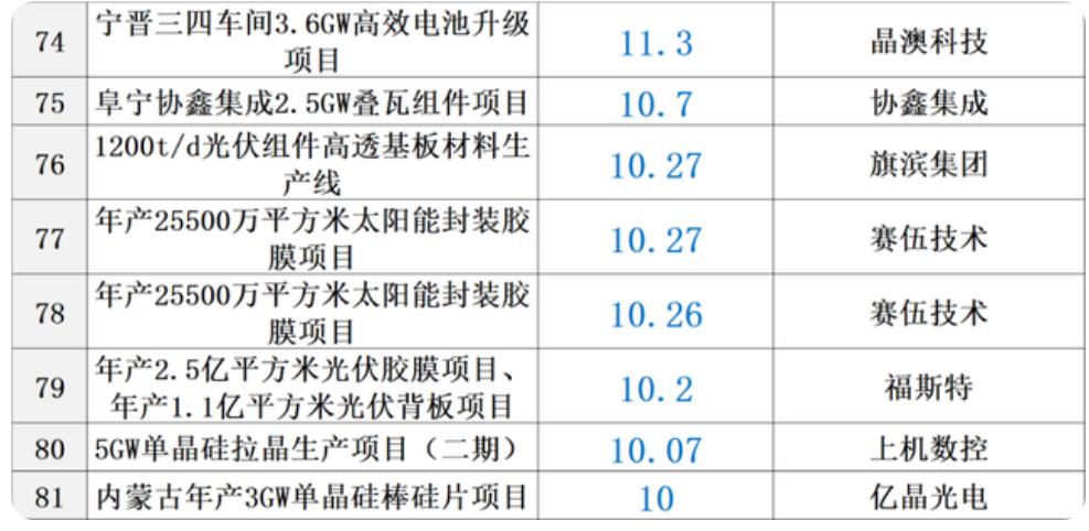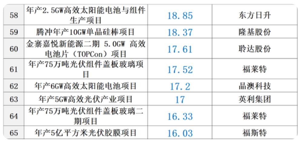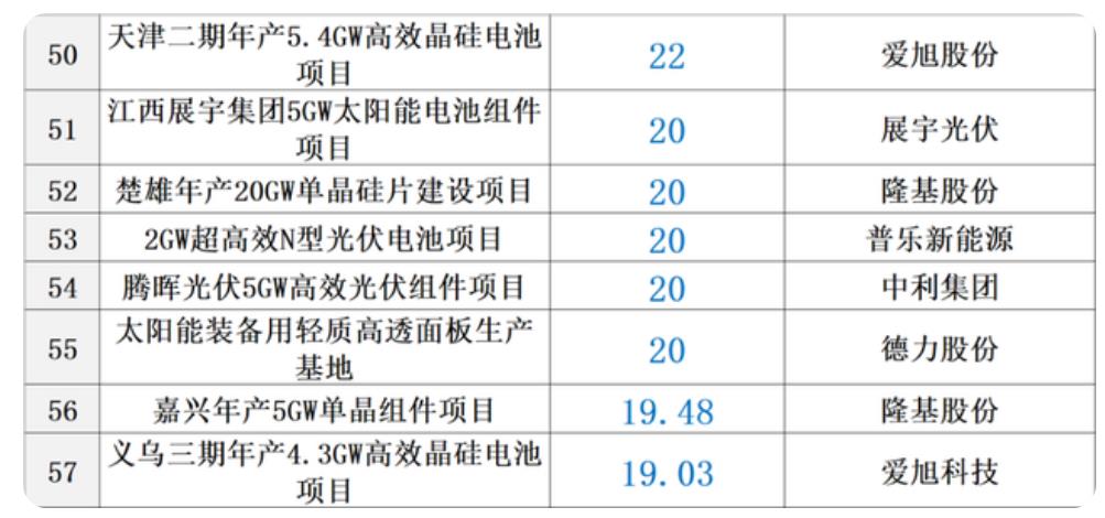 從2020年至今,光伏行業(yè)公布的擴張項目總量超過130個,總投資額超過5000億元。那么,硅料、硅棒、硅片、電池、組件、逆變器、設備、輔材等不同環(huán)節(jié)的項目建設成本是多少?黑鷹光伏統(tǒng)計了超過50個光伏重大項目的關鍵投資數(shù)據(jù),基本涵蓋光伏各核心產(chǎn)業(yè)鏈,主要統(tǒng)計信息為項目名稱、投資預算、建設期限、施工地點及建設成