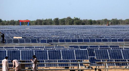 8月28日,在巴基斯坦旁遮普省巴哈瓦爾布爾地區(qū),巴基斯坦工人在中興能源有限公司投資建設(shè)的900兆瓦光伏地面電站安裝太陽(yáng)能電池板。中興能源900兆瓦光伏地面電站位于巴基斯坦旁遮普省巴哈瓦爾布爾真納太陽(yáng)能工業(yè)園,總投資額逾15億美元,是中巴經(jīng)濟(jì)走廊的優(yōu)先實(shí)施項(xiàng)目之一。該項(xiàng)目分三期實(shí)施,每期300兆瓦,預(yù)計(jì)2017年全部建成,目前首個(gè)50兆瓦項(xiàng)目已接近完工,將于近期實(shí)現(xiàn)并網(wǎng)發(fā)電。新華社發(fā)(艾哈邁德·卡邁勒攝)