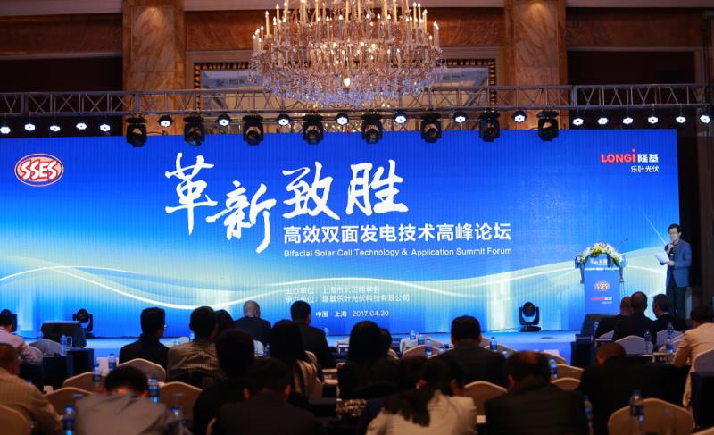 4月20日,SNEC(2017)第十一屆國際太陽能光伏大會暨(上海)展覽會同期會議—“革新致勝”高效雙面發(fā)電技術(shù)高峰論壇在上海浦東香格里拉大酒店成功召開,單晶組件領(lǐng)軍企業(yè)隆基樂葉與行業(yè)相關(guān)機(jī)構(gòu)專家就太陽能光伏雙面發(fā)電技術(shù)現(xiàn)狀、應(yīng)用及發(fā)展趨勢等展開深入討論。