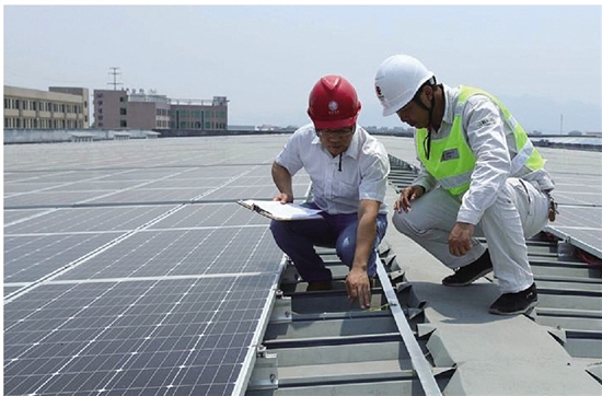 5月31日,蘭溪市經(jīng)濟(jì)開發(fā)區(qū)浙江隆鑫紡織有限公司屋頂上,國(guó)網(wǎng)蘭溪市供電公司光伏驗(yàn)收組正在分布式光伏發(fā)電項(xiàng)目進(jìn)行驗(yàn)收,為最后的并網(wǎng)做準(zhǔn)備。這是蘭溪首個(gè)全額上網(wǎng)的屋頂光伏電站,投產(chǎn)后預(yù)計(jì)年均發(fā)電量為321.494萬千瓦時(shí)。 “全額上網(wǎng)是指安裝的光伏電站所發(fā)的電量,全部賣給國(guó)家電網(wǎng)!碧m溪市供電公司客戶經(jīng)理徐航說