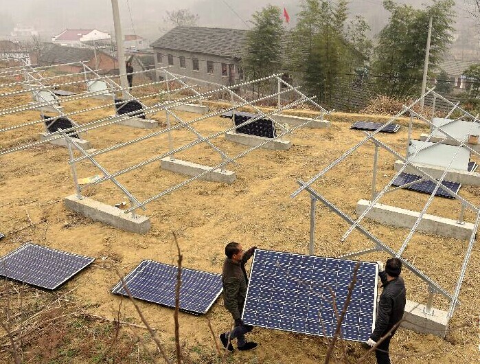 在關(guān)廟鄉(xiāng)墨園村蔡畈組,來自六安振興集團(tuán)的施工人員正在對新建成的60千瓦光伏發(fā)電板進(jìn)行調(diào)試。墨園村產(chǎn)業(yè)薄弱,在修建光伏電站之前,村里完全沒有集體收入。 2014年,該村安裝了第一組60千瓦的村級光伏電站,扭轉(zhuǎn)了村集體收入為零的情況!敖衲晷碌碾娬静⒕W(wǎng)之后,每年光伏發(fā)電能帶來10萬余元的收入,這些收入將作為扶貧資金對貧困戶進(jìn)行臨時性救助。 ”村主任張傳友說。