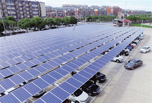 7月11日,安徽滁州全椒縣首座光伏發(fā)電停車場正式投入使用。該停車場可提供停車位160個,頂部安裝的太陽能電板既能為車輛遮陽,又可以發(fā)電供企業(yè)使用。 沈 果攝