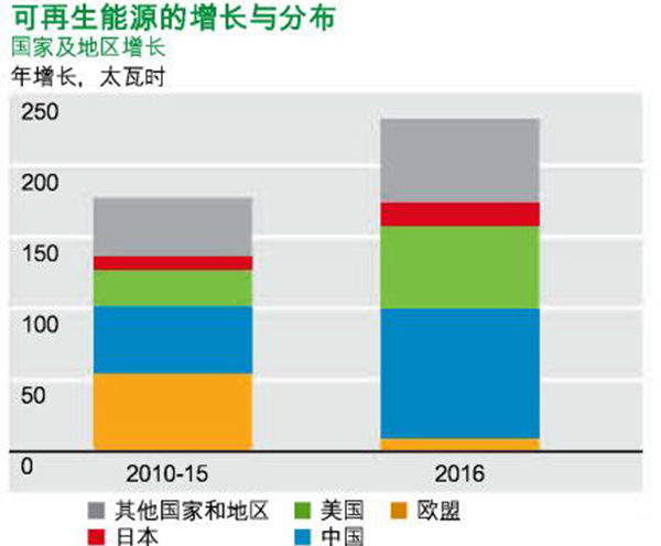 披露上述數(shù)據(jù)的BP年鑒,是能源經(jīng)濟(jì)學(xué)領(lǐng)域備受推崇且最具權(quán)威性的出版物之一,被許多人譽(yù)為能源統(tǒng)計(jì)領(lǐng)域的“《圣經(jīng)》”,已連續(xù)編制66年。年鑒顯示,2016 年全球能源需求增長(zhǎng)1%,遠(yuǎn)低于過(guò)去十年1.8%的平均增長(zhǎng)率。去年的增長(zhǎng)基本來(lái)自于快速增長(zhǎng)的發(fā)展中經(jīng)濟(jì)體,約有一半的增長(zhǎng)量來(lái)自中國(guó)和印度。