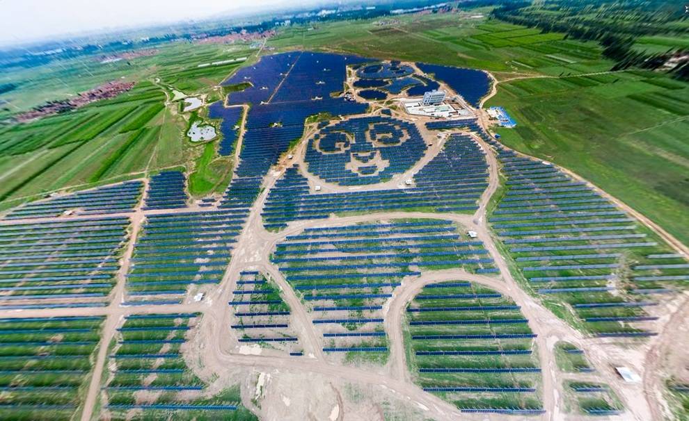 日前,布局在山西大同的全球首座熊貓光伏電站正式并網(wǎng)發(fā)電。熊貓電站是由熊貓綠能集團(tuán)于2016年發(fā)起建設(shè),并攜手聯(lián)合國(guó)開(kāi)發(fā)計(jì)劃署共同推廣的綠色能源示范項(xiàng)目。圖為熊貓電站,即外形依據(jù)國(guó)寶熊貓來(lái)設(shè)計(jì)的電站。 電站由深淺兩種顏色組成:熊貓的深色部分,比如爪子和耳朵,由單晶體硅太陽(yáng)能電池組成;淺色部分由薄膜太陽(yáng)能電池組成。