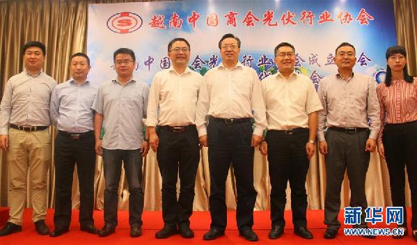 中國駐越南大使館商務(wù)參贊胡鎖錦17日在越南中國商會(huì)光伏行業(yè)協(xié)會(huì)成立儀式上致辭時(shí)表示,中越光伏的產(chǎn)能合作,將提升兩國經(jīng)貿(mào)合作的質(zhì)量與水平。光伏行業(yè)協(xié)會(huì)是越南中國商會(huì)成立的第一家行業(yè)協(xié)會(huì),在越南投資規(guī)模較大的6家光伏企業(yè)當(dāng)選為協(xié)會(huì)理事單位。10月17日,在越南河內(nèi),嘉賓在越南中國商會(huì)光伏行業(yè)協(xié)會(huì)成立儀式上合影!⌒氯A社記者 樂艷