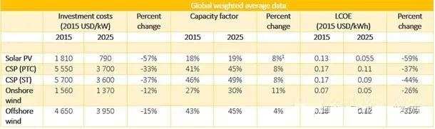 到2025年,光伏、光熱、陸上和海上風(fēng)電成本將大幅度下降: