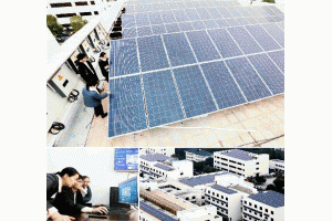1月23日,瑞安市機(jī)關(guān)事務(wù)管理局工作人員和光伏企業(yè)技術(shù)人員正在檢查太陽(yáng)能光伏發(fā)電系統(tǒng)的運(yùn)行情況。目前,市政大院各辦公樓屋頂建設(shè)了多晶硅太陽(yáng)能電池板,占地面積3000余平方米,形成了裝機(jī)容量達(dá)307KWp(千瓦)的光伏發(fā)電系統(tǒng),并實(shí)現(xiàn)和國(guó)家電網(wǎng)聯(lián)網(wǎng)。該系統(tǒng)運(yùn)行半年來(lái),已發(fā)電18萬(wàn)多度,節(jié)省約22噸標(biāo)準(zhǔn)煤消耗,以達(dá)到維持空氣清潔并減少對(duì)氣候影響的目的,為打造綠色生態(tài)家園和至美瑞安,起到良好的示范作用。