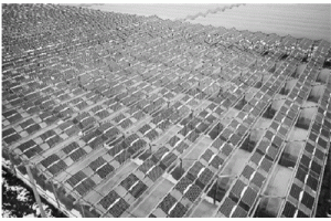 圖為1月28日航拍的江蘇省南通市首個光伏生態(tài)農(nóng)業(yè)大棚示范項目。該生態(tài)農(nóng)業(yè)光伏大棚示范項目裝機容量814.2KW,在占地約1.2萬平方米的農(nóng)田內(nèi)架設(shè)4.855米高的鋼結(jié)構(gòu),頂部安裝2760塊295wp的單晶硅光伏組件,共覆蓋18個蔬菜大棚。項目建成后年光伏發(fā)電量約100萬千瓦時,每年可節(jié)省標煤320噸。光伏大棚融入傳統(tǒng)農(nóng)業(yè),不僅可以獲取高效農(nóng)業(yè)、綠色發(fā)電等經(jīng)濟效益,也實現(xiàn)了節(jié)能減排的社會效益。(東方IC 供圖)