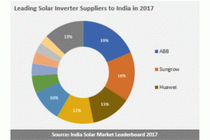 2017年,ABB、陽光電源、華為、東芝三菱和SMA在印度都提供了超過1吉瓦的光伏逆變器。