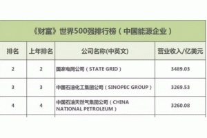 本次排名上榜的27家中國能源企業(yè),包括11家電力企業(yè)、8家煤炭企業(yè)和8家油氣企業(yè)。國家電網(wǎng)以3489.03億美元的營收排名《財富》世界500強排行榜第二名。中石化、中石油分別以3269.53億美元和3260.08億美元的營收,分別位居占第三名和第四名,三家企業(yè)位次相較去年沒有變動。