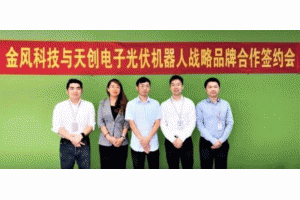 7月19日新疆金風科技股份有限公司全資子公司北京天誠同創(chuàng)電氣有限公司與南京天創(chuàng)電子技術有限公司進行了戰(zhàn)略品牌簽約,雙方共同簽署了《光伏電站運維機器人品牌聯(lián)合協(xié)議書》,并就該項目未來的市場推廣達成了長期合作意向。