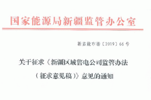 《新疆區(qū)域售電公司監(jiān)管辦法(征求意見(jiàn)稿)》印發(fā)