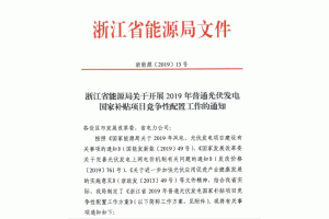 浙江省能源局關(guān)于開展2019年普通光伏發(fā)電國(guó)家補(bǔ)貼項(xiàng)目競(jìng)爭(zhēng)性配置工作的通知