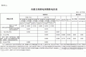 1.內(nèi)蒙古西部電網(wǎng)銷售電價表
