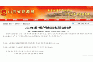 7月9日,山西能源局發(fā)布《2019年1月-6月戶用光伏發(fā)電項(xiàng)目信息公示》,對(duì)2019年1月-6月以及2018年納入2019年國(guó)家財(cái)政補(bǔ)貼規(guī)模項(xiàng)目和“山西省6月納入2019年國(guó)家財(cái)政補(bǔ)貼規(guī)模戶用光伏項(xiàng)目名單”進(jìn)行公示。