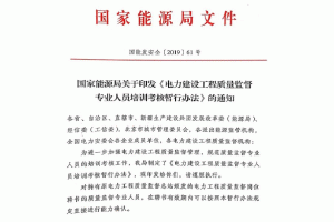 能源局發(fā)布電力工程質量監(jiān)督專員培訓考核暫行辦法