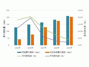 圖1 2015-2019年風、光累計裝機量及棄風、棄光率