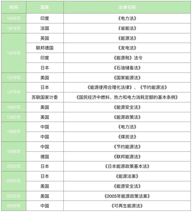 《能源法》的構(gòu)想可以追溯到更長遠(yuǎn)的年代,大致分為四個階段: