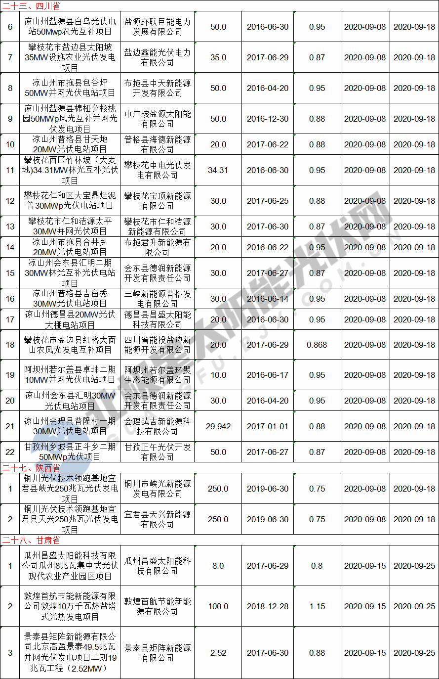 9月16日,國家電網(wǎng)公示了最新一批的可再生能源發(fā)電補貼項目清單,其中共涉及105個集中式光伏項目,總裝機容量達2742.63MW,涵蓋山西、內(nèi)蒙古、遼寧、江蘇、浙江、安徽、江西、山東、湖南、重慶、四川、陜西、甘肅13個省份。