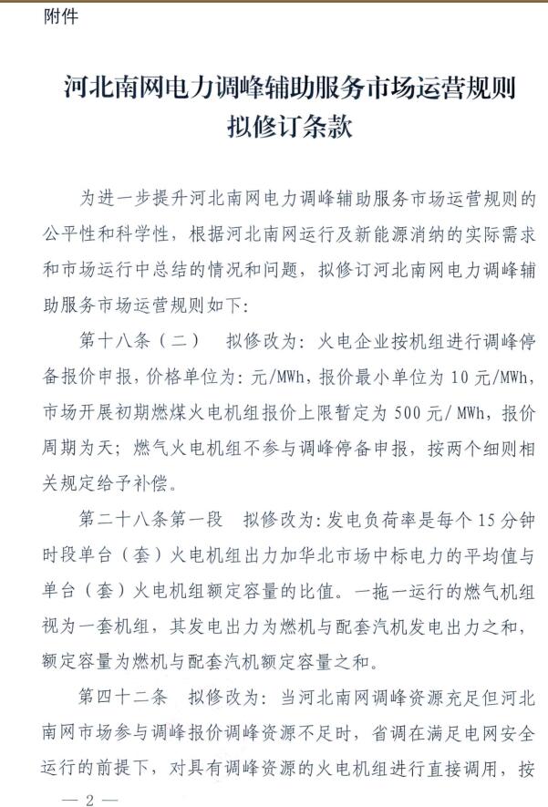11月2日,華北能源監(jiān)管局印發(fā)關(guān)于征求河北南網(wǎng)電力調(diào)峰輔助服務(wù)市場運(yùn)營規(guī)則修訂意見的函,就擬修改條款征求意見。詳情如下: