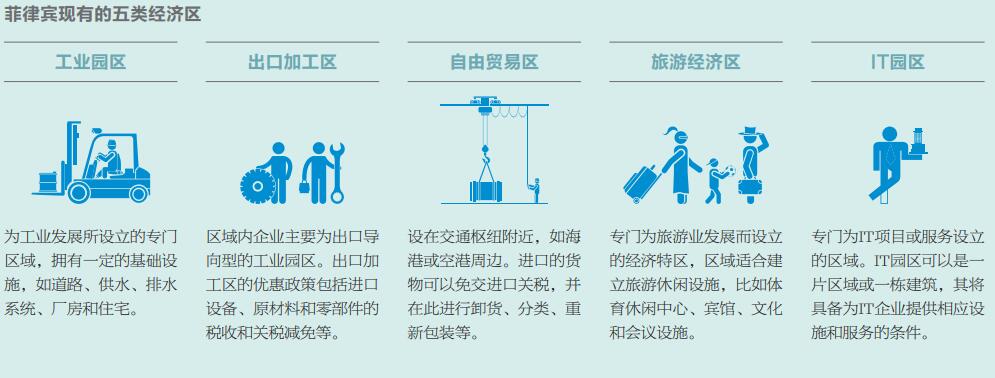 區(qū)域經(jīng)濟(jì)方面,菲律賓共有239個(gè)各類(lèi)經(jīng)濟(jì)區(qū),主要 由菲律賓經(jīng)濟(jì)區(qū)(PEZA)所轄的96個(gè)各類(lèi)經(jīng)濟(jì)區(qū)和獨(dú)立 經(jīng)營(yíng)的菲律賓弗德克工業(yè)區(qū)、蘇比克、卡加延、三寶顏、 克拉克自由港等組成。
