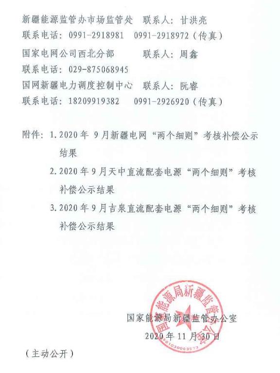 9月份新疆電網(wǎng)、天中、吉泉直流配套電源“兩個細(xì)則”考核補償結(jié)果公示