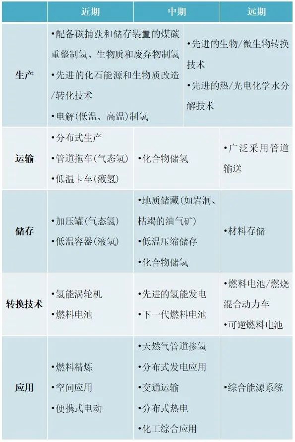 表1 美國氫能近中遠(yuǎn)期關(guān)鍵技術(shù)選項(xiàng)