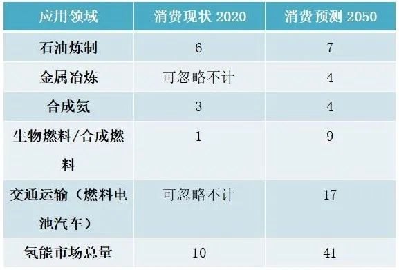 表2 美國氫能消費(fèi)現(xiàn)狀和未來消費(fèi)預(yù)測(百萬噸/年)