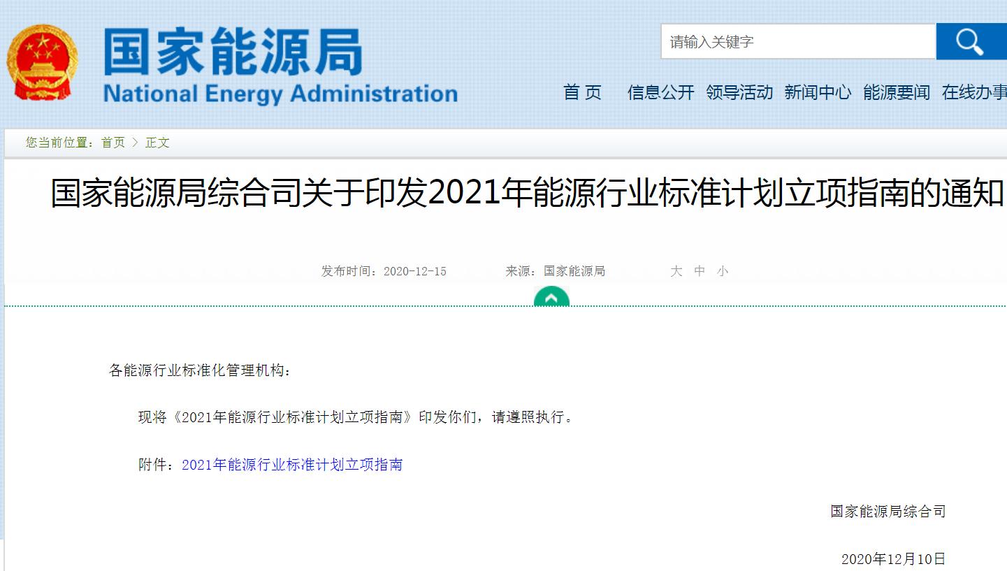 2021年能源行業(yè)標(biāo)準(zhǔn)計劃立項指南