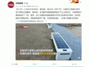 據(jù)微博 @中新視頻消息,江蘇鎮(zhèn)江揚(yáng)中市的濱江零碳公園內(nèi),出現(xiàn)了一種覆蓋有大面積太陽能電池板的長凳。長凳側(cè)面具備按鈕,邊緣黑色部分是無線充電模塊,可以給支持 Qi 等協(xié)議的手機(jī)進(jìn)行充電。