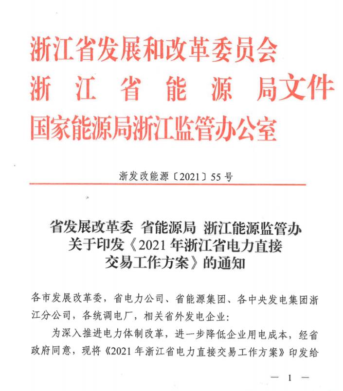 為深入推進電力體制改革,有效降低企業(yè)用電成本,做好2021年全市電力用戶申報電力直接交易相關(guān)工作,浙江發(fā)展和改革委員會等部門印發(fā)2021年浙江省電力直接交易工作方案,全文如下: