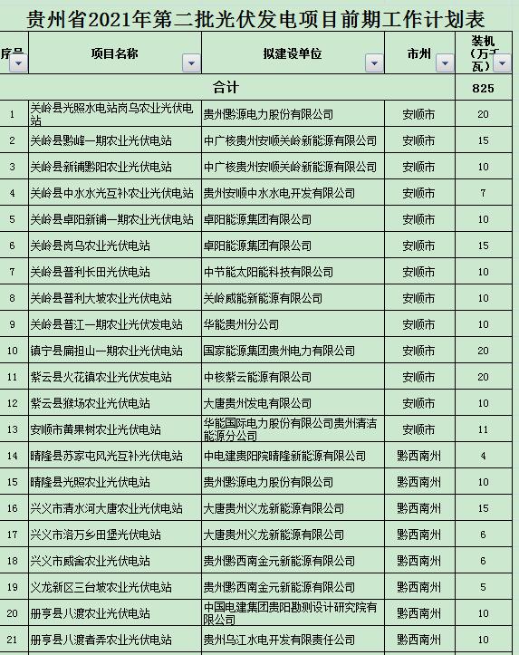 據(jù)貴州省能源局《關(guān)于下達(dá)貴州省2021年第二批光伏發(fā)電項(xiàng)目開展前期工作計(jì)劃的通知》要求: