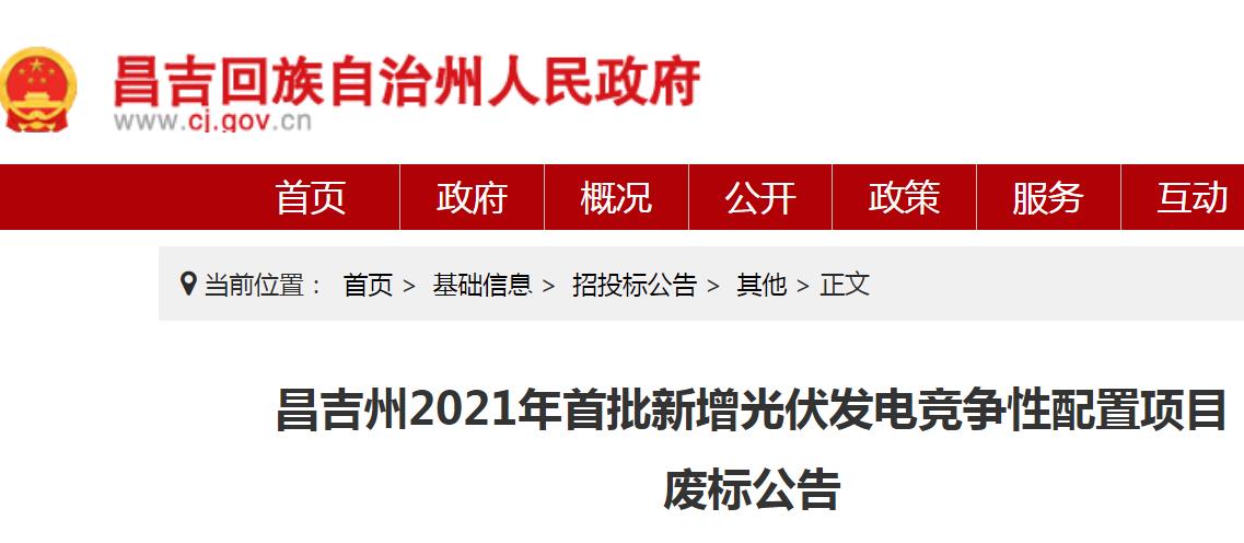 昌吉州政府網(wǎng)消息:4月13日,昌吉州發(fā)布2021年首批新增光伏發(fā)電競爭性配置項目廢標公告稱:昌吉州2021年首批新增光伏發(fā)電競爭性配置項目,于2021年4月13 日上午11:00(北京時間)在昌吉園林賓館一樓大堂吧開標,在評標過程中,有9家單位均不符合招標文件1.2.2初步評審(投資業(yè)主資格審查),因投標人不足三家,無法繼續(xù)開