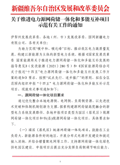 5月7日,新疆發(fā)改委印發(fā)《關(guān)于推進(jìn)電力源網(wǎng)荷儲(chǔ)一體化和多能互補(bǔ)項(xiàng)目示范有關(guān)工作的通知》,就項(xiàng)目申報(bào)的具體要求作出明確,申報(bào)截止日期為5月20日。