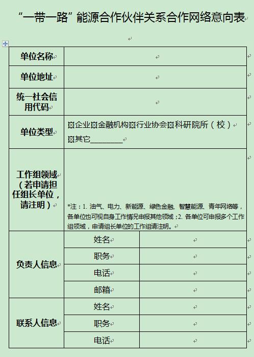 通知表示,請各有關(guān)單位結(jié)合工作需要,研提關(guān)于伙伴關(guān)系合作網(wǎng)絡(luò)建設(shè)和發(fā)展的意見建議,如有意向加入伙伴關(guān)系合作網(wǎng)絡(luò),請?zhí)顖蟆丁耙粠б宦贰蹦茉春献骰锇殛P(guān)系合作網(wǎng)絡(luò)意向表》,并于6月30日前報送國家能源局國際司。