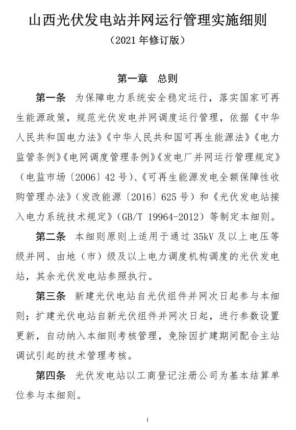 通知及《山西光伏發(fā)電站并網(wǎng)運(yùn)行管理實(shí)施細(xì)則》全文如下: