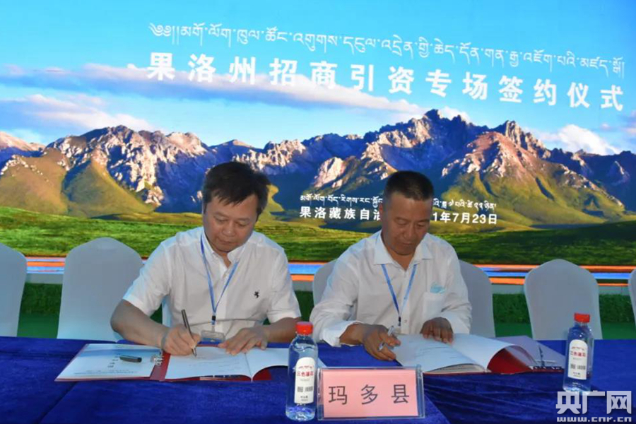 瑪多縣與葛洲壩集團機電建設(shè)有限公司成功簽約(央廣網(wǎng)發(fā) 仇帥 攝)