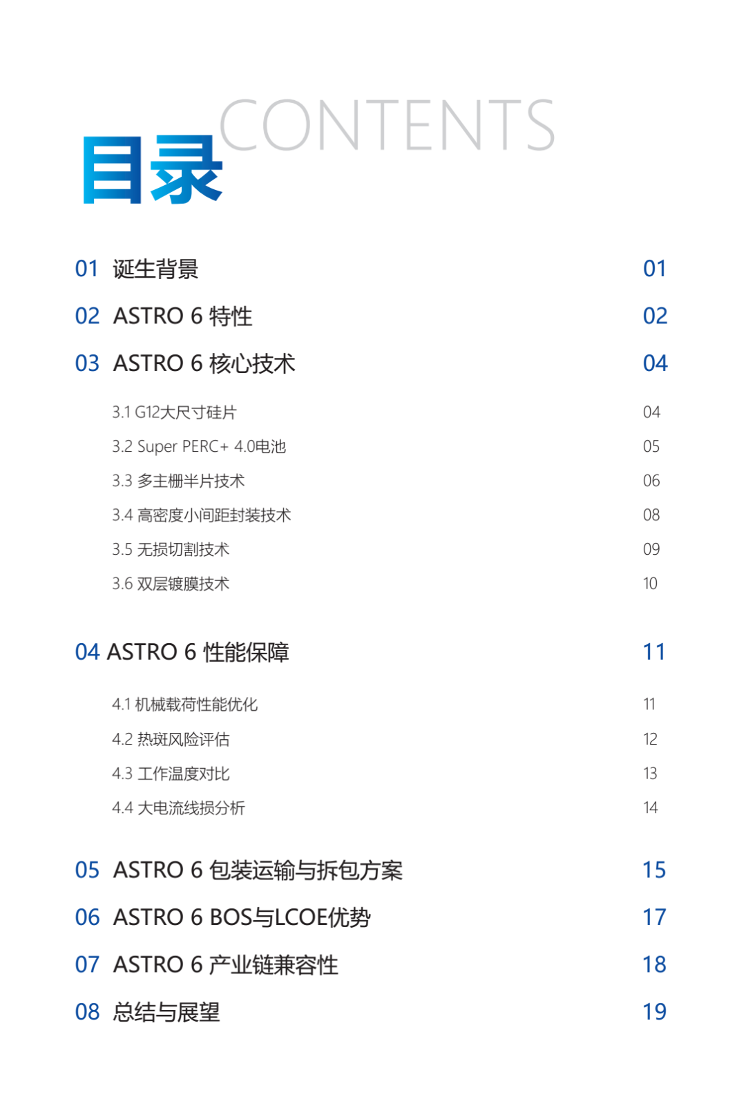 正泰新能源產(chǎn)品管理團(tuán)隊圍繞ASTRO 6組件發(fā)布近三個月以來市場動態(tài)及客戶關(guān)心的問題和對應(yīng)的解決方案,編制了《ASTRO 6 產(chǎn)品白皮書》,從八方面詳盡介紹ASTRO 6組件的誕生背景、產(chǎn)品特性、核心優(yōu)勢、性能保障、創(chuàng)新包裝方案、客戶價值、產(chǎn)業(yè)鏈兼容性及總結(jié)展望,為行業(yè)提供詳細(xì)的技術(shù)解讀。