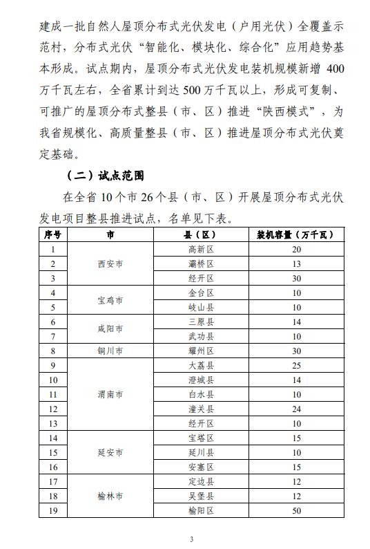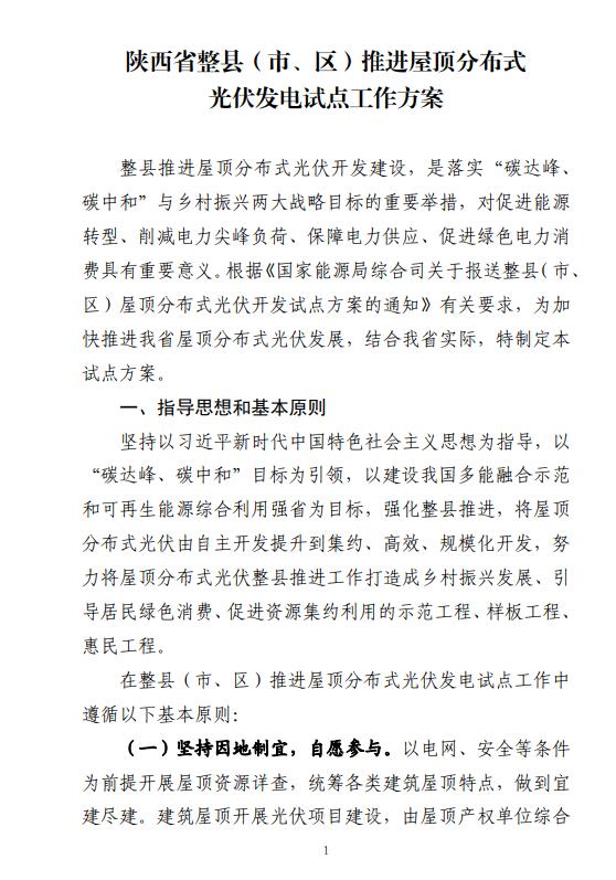 試點(diǎn)期內(nèi),屋頂分布式光伏發(fā)電裝機(jī)規(guī)模新增 400萬(wàn)千瓦左右,全省累計(jì)到達(dá) 500 萬(wàn)千瓦以上,形成可復(fù)制、可推廣的屋頂分布式整縣(市、區(qū))推進(jìn)“陜西模式”,為我省規(guī);⒏哔|(zhì)量整縣(市、區(qū))推進(jìn)屋頂分布式光伏奠定基礎(chǔ)。