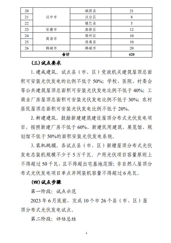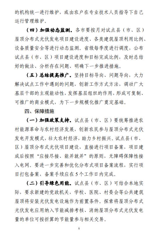2023年6月底前,試點(diǎn)縣(市、區(qū))各類(lèi)屋頂安裝光伏發(fā)電的比例均達(dá)到國(guó)家相關(guān)要求。