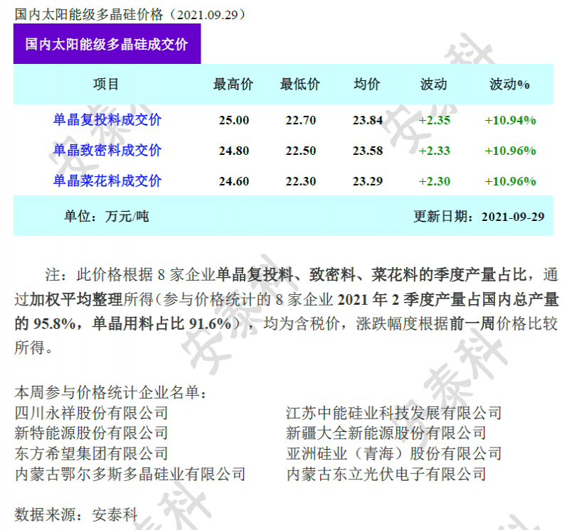 第一,在下游需求持續(xù)高位的情況下,9月份部分硅料企業(yè)已將訂單超簽至10月份,目前無(wú)余量可簽;