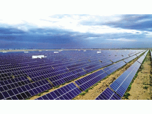 在酒泉金塔縣城西的廣闊戈壁,浩瀚萬(wàn)頃的光伏發(fā)電板如同一排排等待檢閱的士兵排列整齊,場(chǎng)面蔚為壯觀。