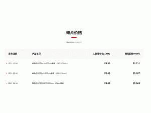12月16日,隆基股份官網(wǎng)發(fā)布了單晶硅片最新報(bào)價(jià)。對(duì)于165μm厚度的P型單晶硅片,M10尺寸由6.20元下調(diào)到5.85元,下調(diào)幅度5.7%;M6尺寸由5.32下調(diào)到5.03元,下調(diào)幅度5.5%;G1尺寸由5.12元下調(diào)到4.83元,下調(diào)幅度5.7%。